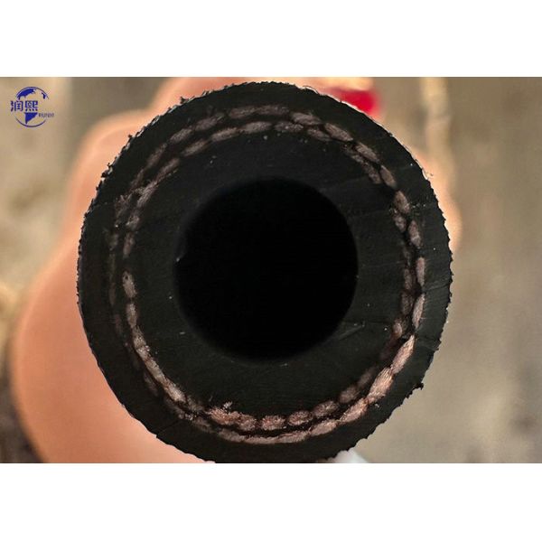 SAE 100 R3 textile reinforced hydraulic hose is suitable for delivering petroleum or water-based hydraulic fluids. It is mainly used in low pressure conditions and it is also used in pneumatic applications. It is composed of three parts: tube, reinforcement and cover. The tube is made from high quality oil resistant synthetic rubber, and it doesn't react with petroleum or water-based hydraulic fluids. The reinforcement is made from two layers of braided textile, making the hose lightweight and flexible. The hose is easy to operate as a result. The cover is made from high quality abrasion, corrosion, weather and oil resistant synthetic rubber, making the hose have longer service life.