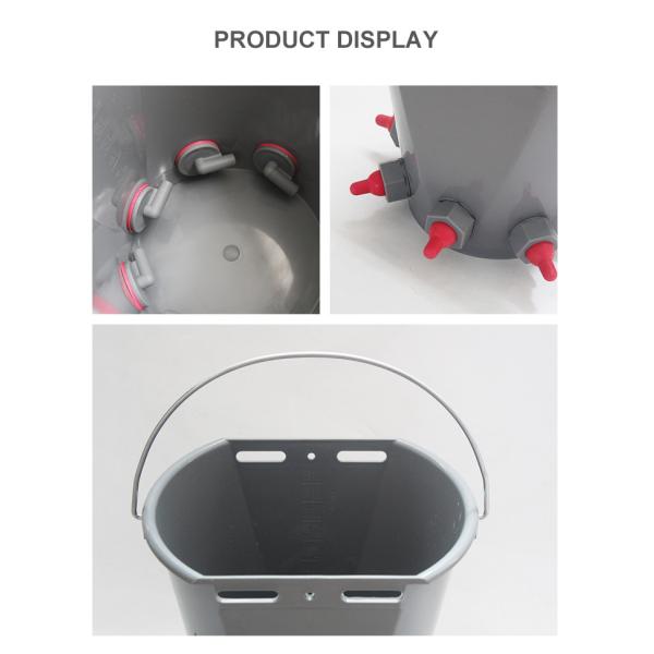 The Calf Nourishment Bucket is designed to be used during the feeding process of young calves. The bucket is equipped with 2 to 5 nipples, making it easy to feed multiple calves at once. The nipples are easy to install and can be adjusted to fit the needs of the calves. The bucket also features a reinforced rim, sturdy handle, and easy pouring spout, making it easy to handle and pour without spilling any milk.